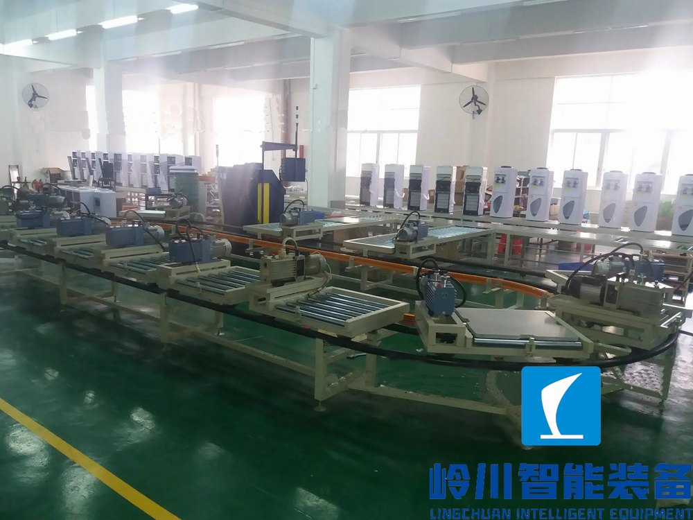 嶺川飲水機生產(chǎn)流水線系統(tǒng)----飲水機生產(chǎn)流水線輸送系統(tǒng)---環(huán)形抽真空流水線